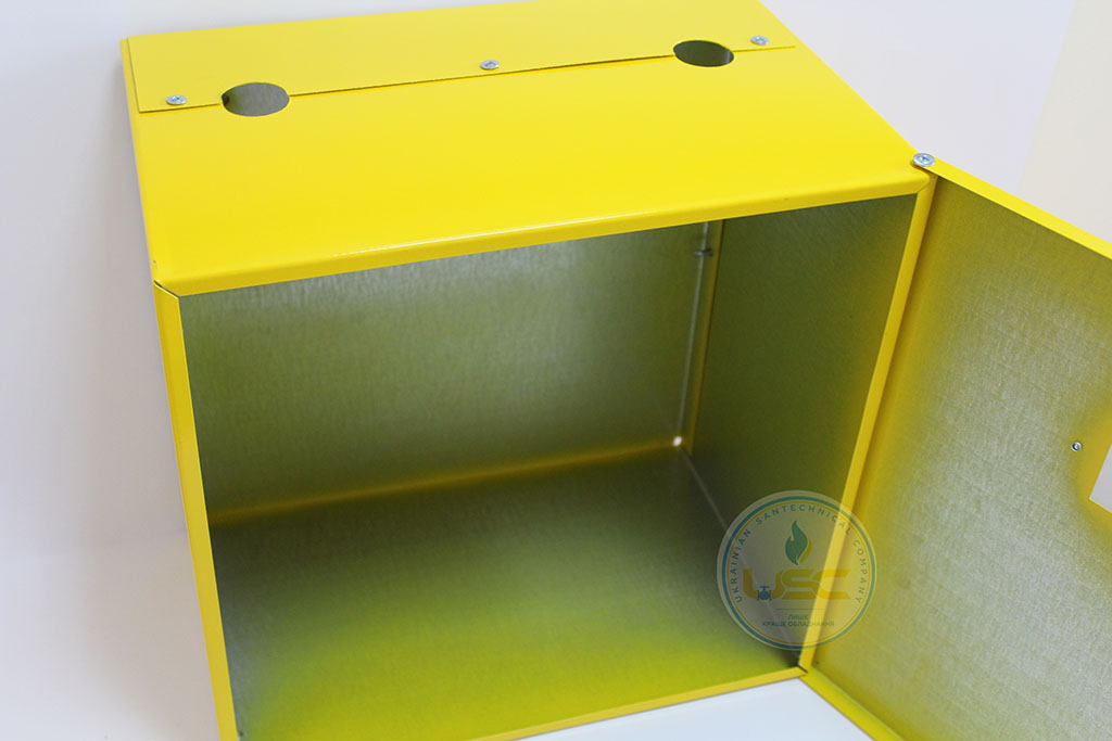 Ящики металеві до лічильників газу використовується для захисту від впливу навколишнього середовища. Вони виготовленні з оцинкованого металу товщиною 0,7-1,2 мм, пофарбовані порошковою фарбою жовтого кольору. Мають замки, прозорі пластикові віконця, етикетку "ГАЗ Вогненебезпечно". Ящик металевий до лічильника газу G10 підходить для лічильників газу G10. Країна виробник - Україна.