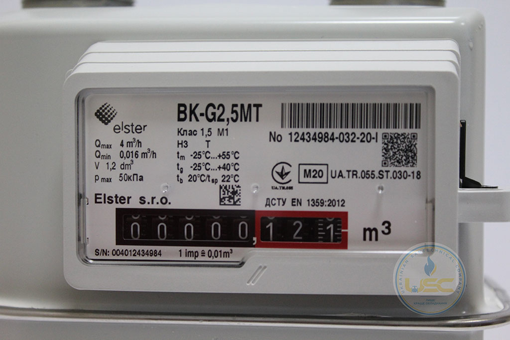 Лічильники газу Elster відповідають усім необхідним вимогам з точки зору комфорту і точності вимірювання. Лічильники внесені до Державного реєстру ЗВТ України під номером У561-09. Лічильники газу Elster BK-G2,5Т стандартно поставляються з лівосторонім потоком газу з діаметрами підключеня 1 1/4", 1", 3/4".