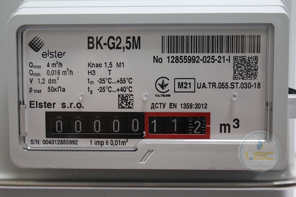 Лічильники газу Elster відповідають усім необхідним вимогам з точки зору комфорту і точності вимірювання. Лічильники внесені до Державного реєстру ЗВТ України під номером У561-09. Лічильники газу Elster BK-G2,5 стандартно поставляються з лівосторонім потоком газу з діаметрами підключеня 1 1/4", 1", 3/4".